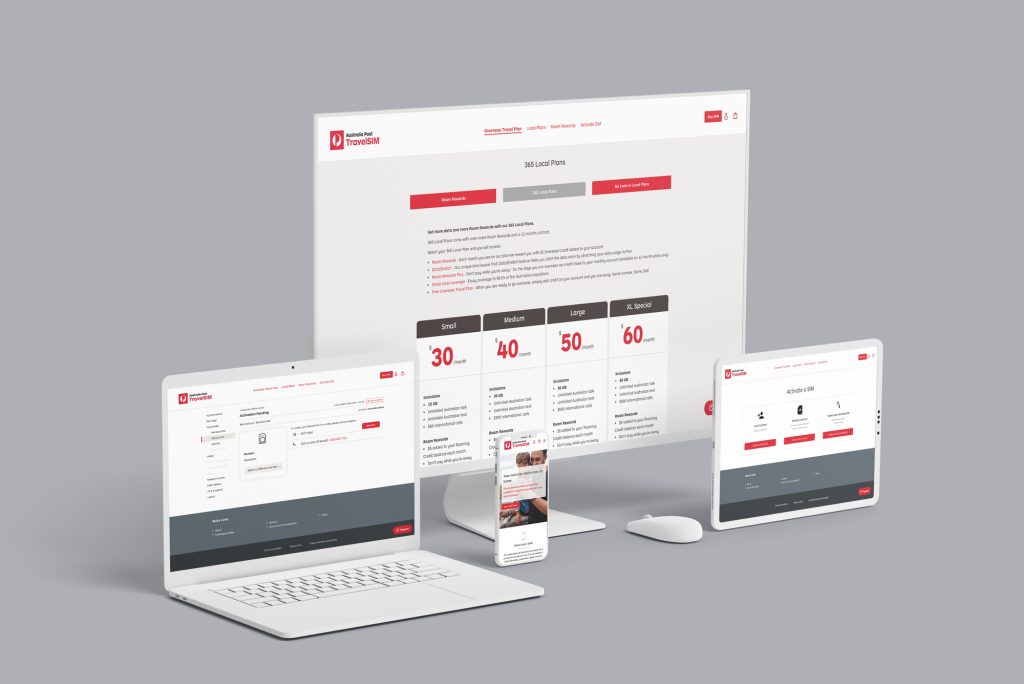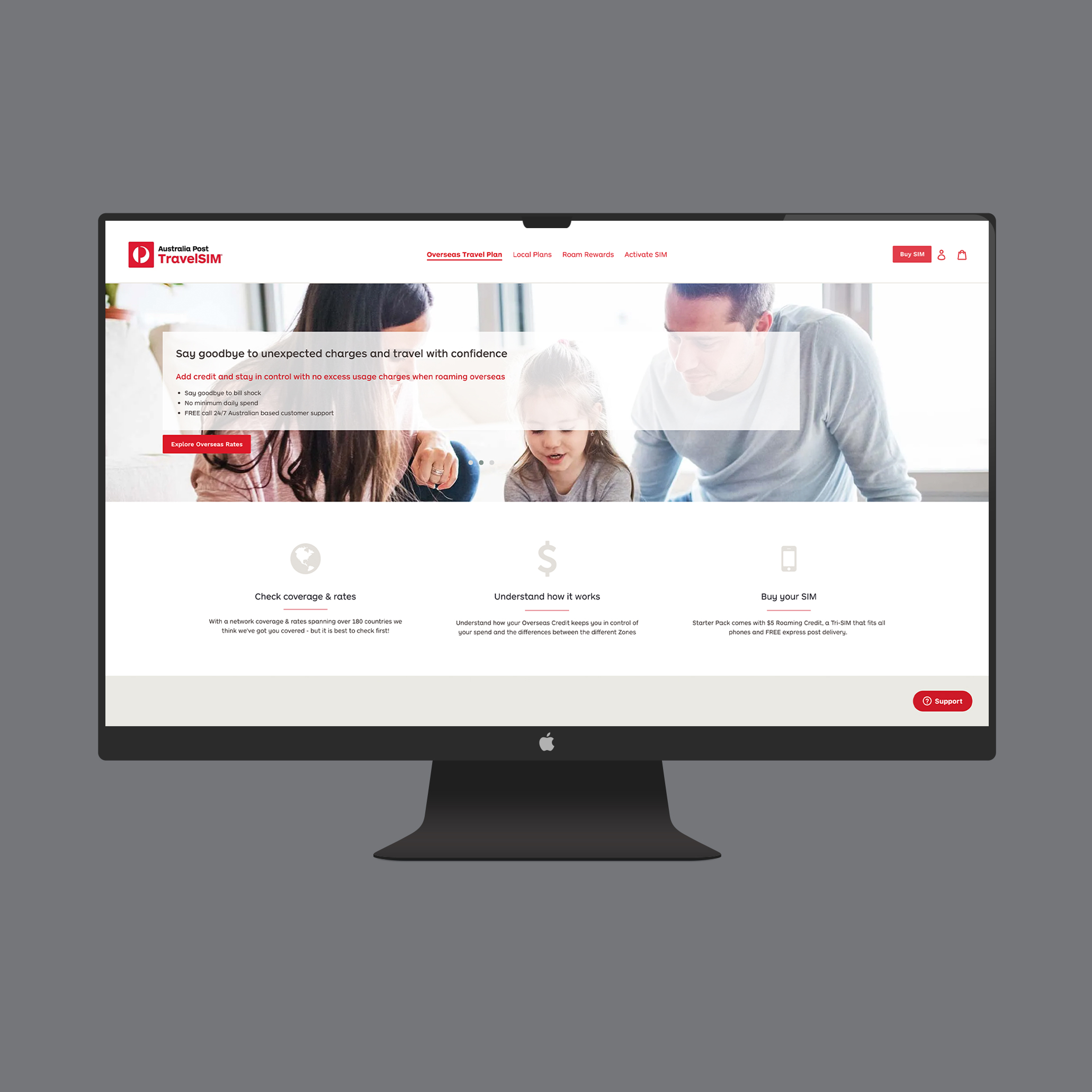 Australia Post TravelSIM required a fully custom-built Shopify Plus® website which provided users with a simple end-to-end solution to purchase a SIM, check their balance/credit, manage their account and recharge seamlessly. Emblm created a custom UI/UX solution for their website and mobile app, with a key focus on maximising agility for updates and fast marketing output.